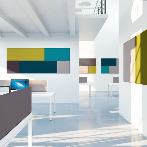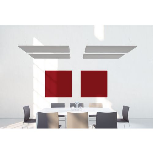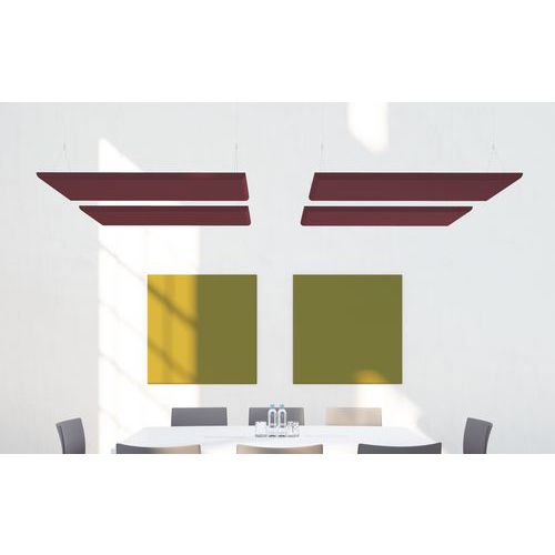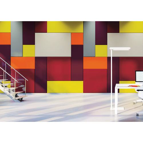 Wand-Schallschutzelement. Korrigiert die Akustik nach Bedarf. Elegant und dekorativ. 2 fissaggi forniti con ciascun pannello in acciaio zincato. Foratura Ø 8 mm Hergestellt in Frankreich Feuersicherheit : M1 Kundengarantie : 3 Jahre