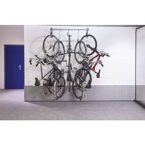 Wandaufhängung für Fahrräder mit Gleithaken - Mottez, Gesamtlänge: 119 cm, Anzahl Plätze: 5
