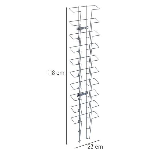 Wandhalter für Prospekte A4, Anzahl Fächer: 10, Farbe: Grau, Gesamtbreite: 23 cm, Gesamthöhe: 118 cm