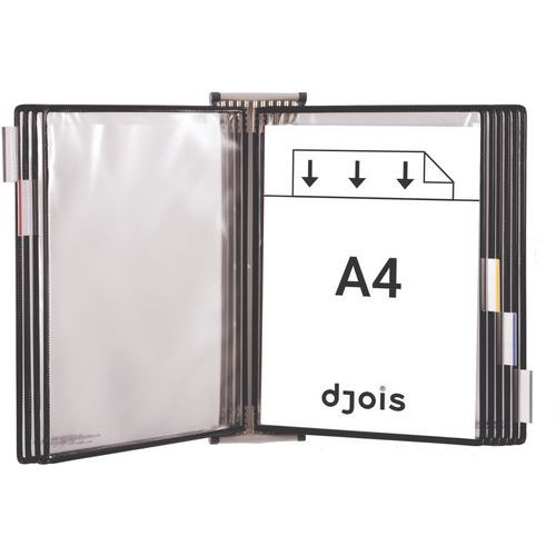 Wandhalter mit Drehgelenk, 10 Hüllen für A4-Format -Tarifold, Haltermaterial: Stahl, Farbe: Schwarz Wandhalter mit Drehgelenk, 10 Hüllen für A4-Format -Tarifold, Haltermaterial: Stahl, Farbe: Schwarz