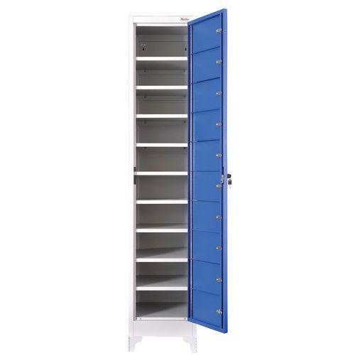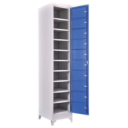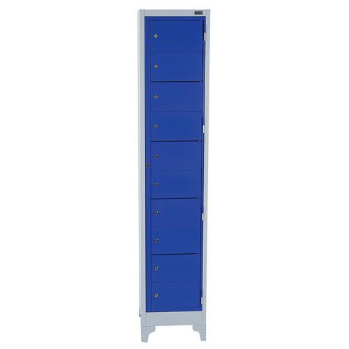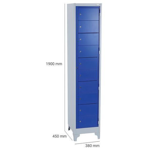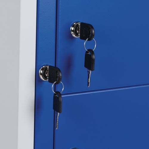 Schrank mit einem Zentralschloss zum Öffnen des Blocks und einem Schlüssel je Fach Alle Schlösser werden mit 2 Schlüsseln geliefert