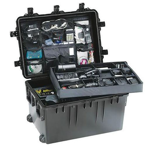 - Breiter wasser-/staubdichter und stoßbeständiger Schutzkoffer Peli Air Case 3075 in Schwarz.