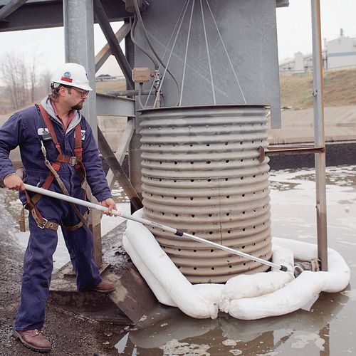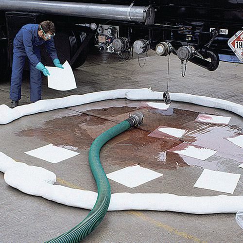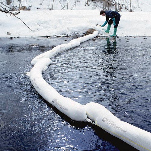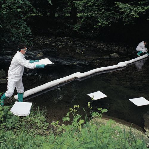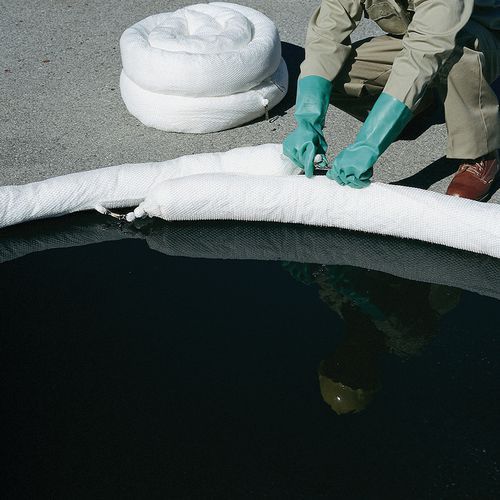 Die vollgesogene Eindämmungssperre ist schwimmfähig. Verbinden mit Stahlbefestigungen zum Eingrenzen größerer Fläche. Verstärkte, UV-beständige Hülle. Sofortige Signalisierung von Leckagen dank der weißen Farbe.