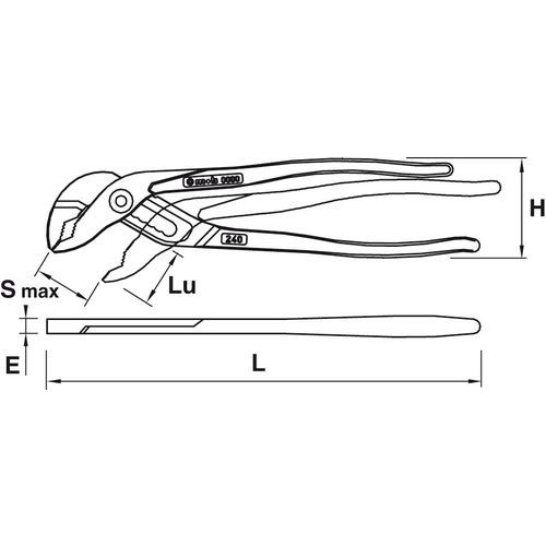 | Produktname | Wasserpumpenzange, Anzahl Positionen: 8, Länge: 240 mm, Typ Nr.: 6480240001, Kapazität: 55 mm, Gewicht: 310 g |