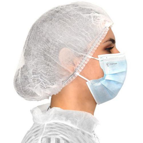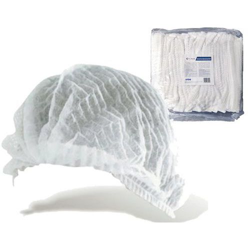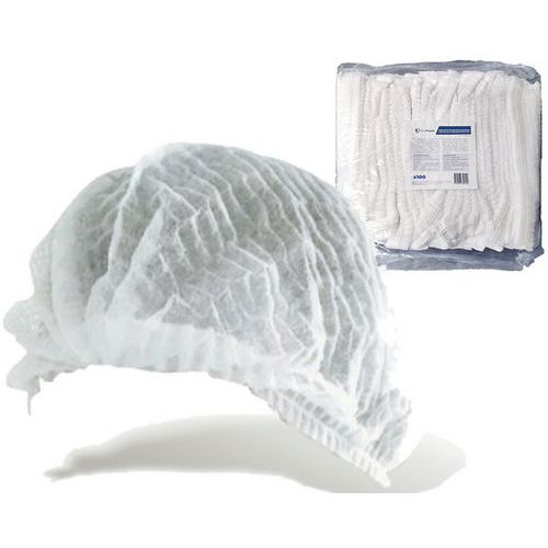 - Runde, weiße Haube für Haare, aus Vlies-Polypropylen, ohne Latex