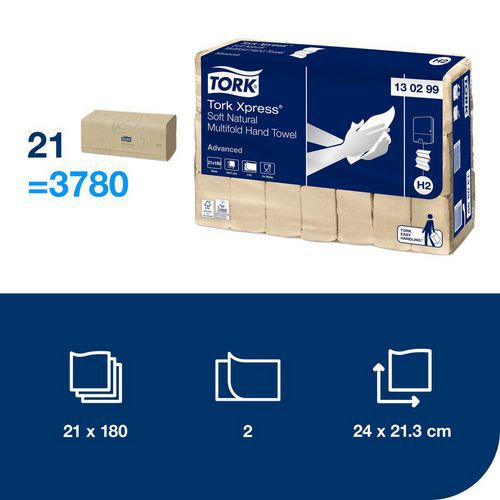| Produktname | Weiche Papiertücher Multifold, zweilagig, natur, H2 Advanced, Farbe: Beige, Breite Blatt: 21.3 mm |