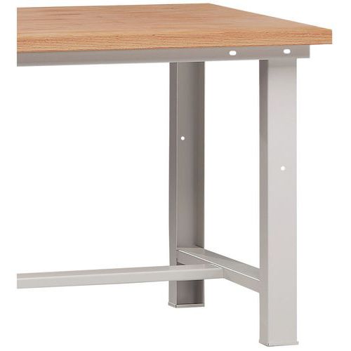 Robuste Werkbank aus geschweißtem Stahlblech. Mit Untergestell für mehr Stabilität. Einfache Montage mit Schrauben und Muttern.