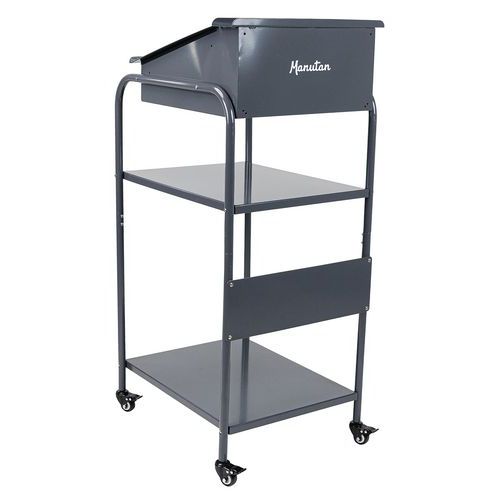 Mobiles Werkstattpult mit Sicherheitsdeckel im oberen Bereich Praktisch: Der Pultdeckel kann als Schreibunterlage dienen Für mehr Sicherheit ist ein Verriegelungssystem integriert Das sehr funktionelle und wendige Werkstattpult ist mit vier Rollen ausgestattet