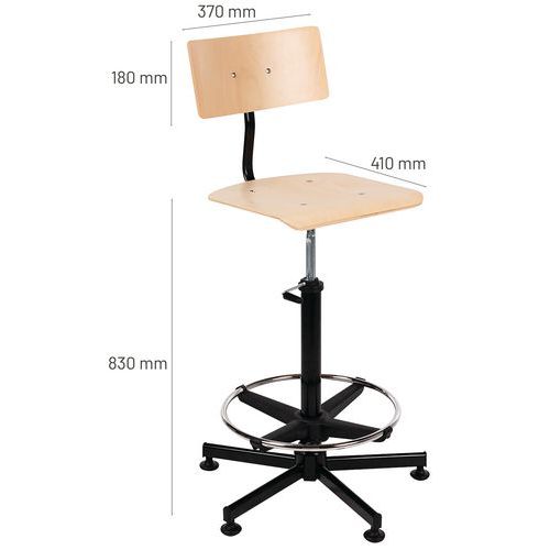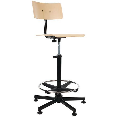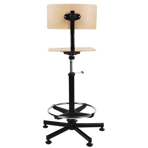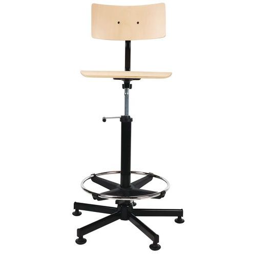 | Produktname | Werkstattstuhl aus Holz - Hoch, Mit Armlehnen: nein, Typ Unterseite: 5 Füßen, Sitz Material: Multiplexplatte |