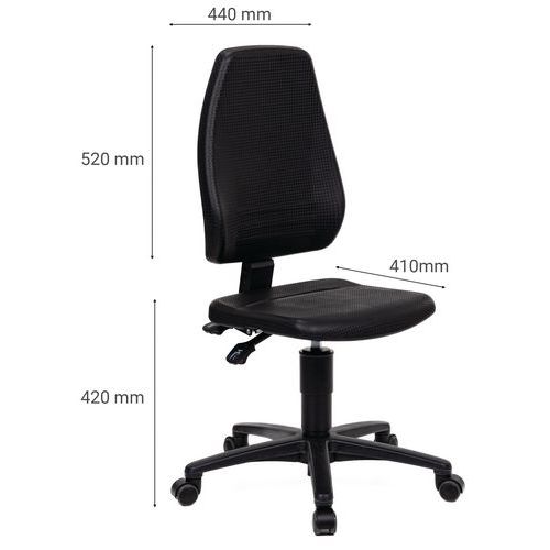 | Produktname | Werkstattstuhl ErgoSupport - Niedriges Modell, Typ Fuss: Rollen, Sitz Material: Polyurethan |