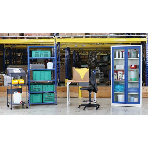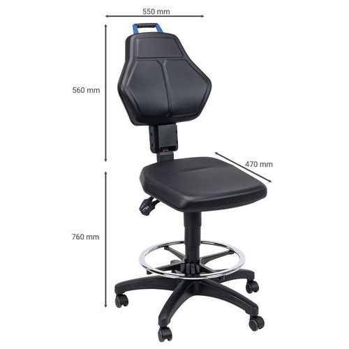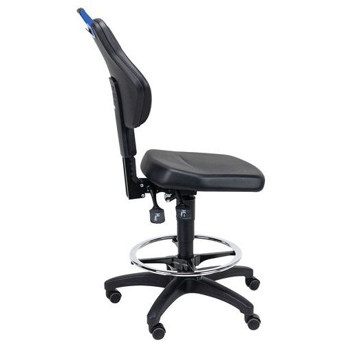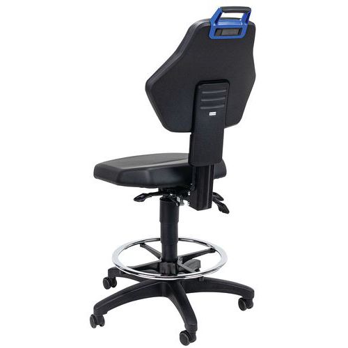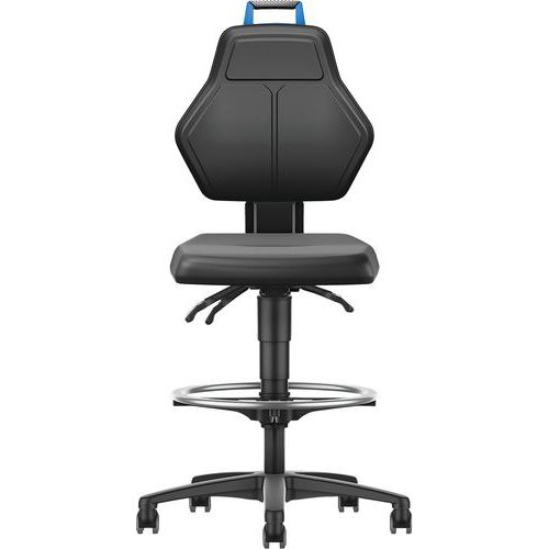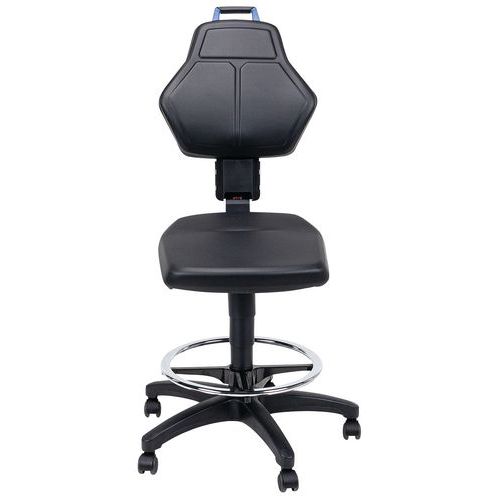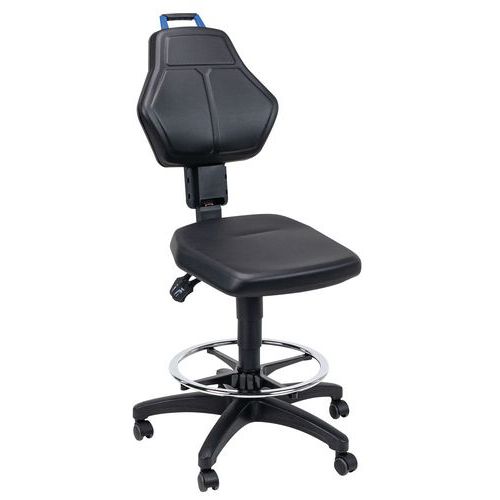 | Produktname | Werkstattstuhl - Hoch und auf Feststellrollen - Manutan Expert, Sitz Material: Kunstleder, Rückenlehne: ja |