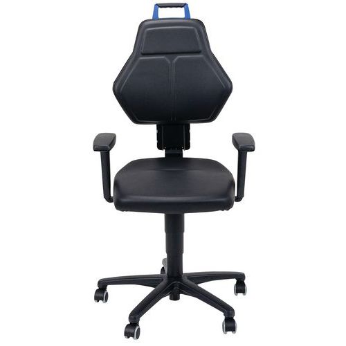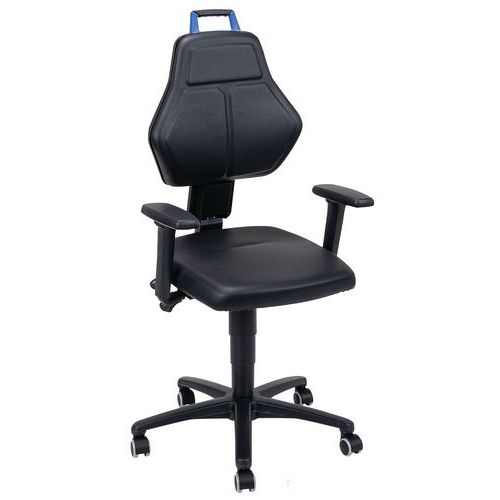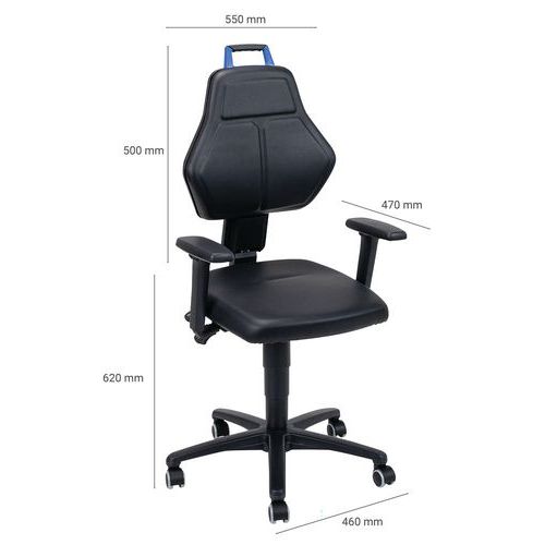 | Produktname | Werkstattstuhl - Niedrig, Kunstleder, auf Rollen - Manutan Expert, Sitz Material: Kunstleder, Rückenlehne: ja |