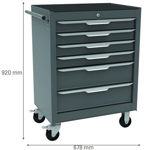 | Produktname | Werkstattwagen, 6 Schubladen, mit 80 Werkzeugen - Manutan Expert, Max. Belastung: 300 kg |