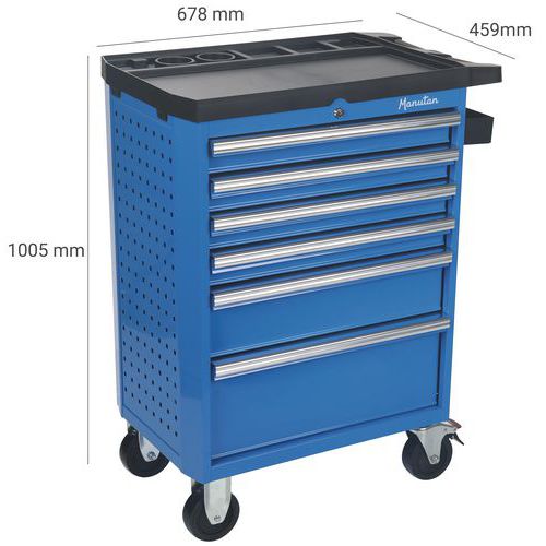 Werkstattwagen 6 Schubladen mit Fachboden und 111 Werkzeugen - Manutan Expert