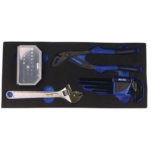 | Produktname | Werkstattwagen, 7 Schubladen, mit 111 Werkzeugen - Manutan Expert, Max. Belastung: 300 kg |