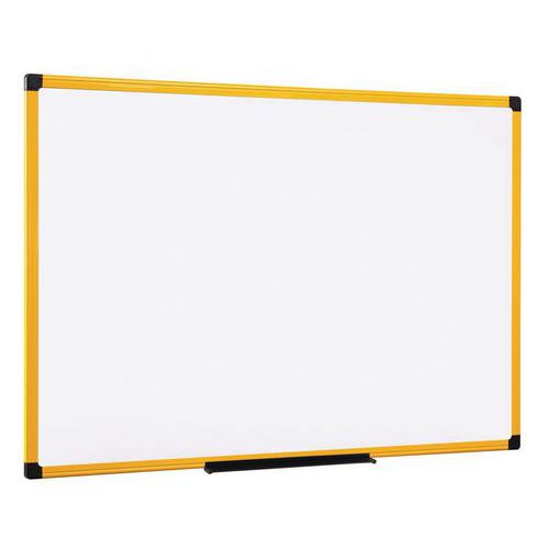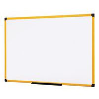 - Das magnetische Whiteboard ist dank der gelben Struktur gut sichtbar.
