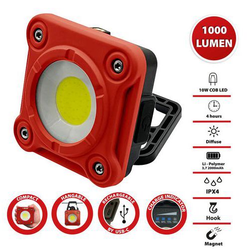 Sehr lichtstarker Modus mit 1000 Lumen, die LED-Arbeitsleuchte Fargo verfügt über 3 Lichtmodi für jeden Bedarf Über USB wiederaufladbar: Sie müssen sich keine Sorgen mehr um leere Batterien machen Fargo ist mit einem wiederaufladbaren Li-Po-Akku (2 Ah) für mindestens 4 Leuchtstunden ausgestattet Außerdem mit praktischer Ladeanzeige zum Überwachen des Ladezustands Robust und widerstandsfähig: aus äußerst dickem Kunststoff und Aluminiumdruckgussteilen gefertigt, dadurch ist eine ausgezeichnete Stoßfestigkeit und Wärmeableitung vorhanden Die kleine, vielseitig einsetzbare Leuchte Fargo kann auf verschiedene Art und Weise verwendet werden