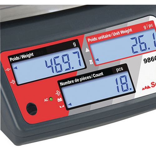 - Perfektes Ablesen über drei Anzeigen: Brutto- oder Nettogewicht, Einheitsgewicht und Anzahl der Teile.