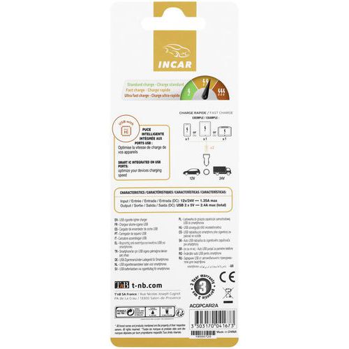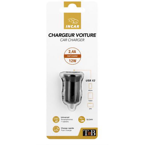 | Produktname | Doppel-USB-Ladegerät für Zigarettenanzünder 2.4A, Farbe: Schwarz, Recycelbare Verpackung: Ja - 100% |