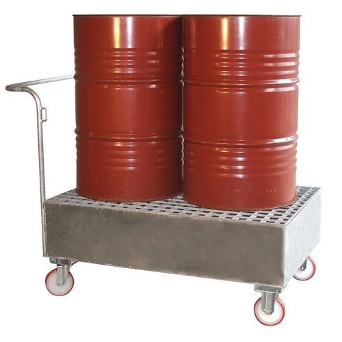 Zubehör für Auffangwagen aus Metall. Zapfgestell für 1 liegendes 220 L-Fass. Haltegurt für ein oder zwei 220 L-Fässer, an dem Schiebebügel befestigt.