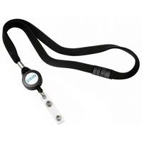 - Band mit Abroller und Karabinerhaken für Namensschilder mit Schlitz.