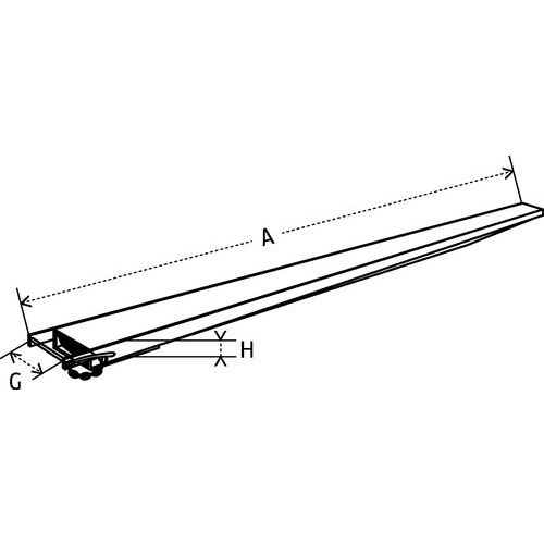 Schnelle Installation, direkte Aufnahme mit dem Gabelstapler. Geeignet für schwere Lasten. Zur besseren Festigkeit sind die Verlängerungen vorne und hinten teilweise geschlossen. Zur optimalen Sicherheit werden die Verlängerungen hinter dem Ansatz der Gabeln verriegelt. Die maximale Last bezieht sich auf ein über die gesamte Verlängerung verteiltes Gewicht.
