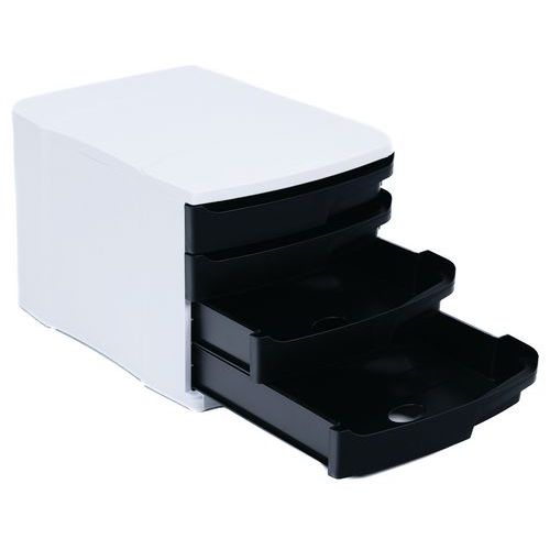 | Produktname | Zweifarbiges Ablagesystem mit 4 Schubladen - Manutan Expert, Werkstoff: Polypropylen, Anzahl Schubladen: 4 |